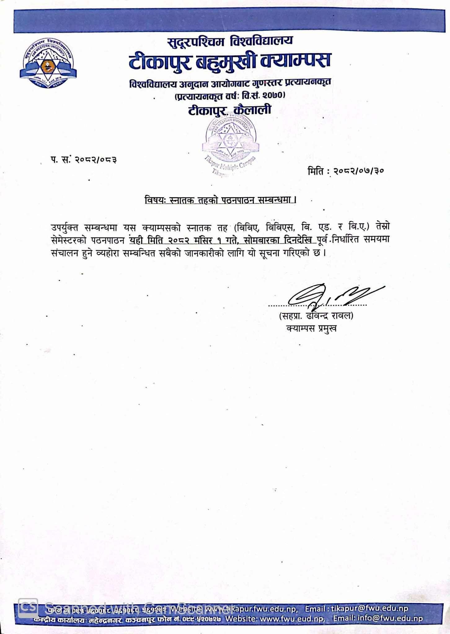 स्नातक तहको पठनपाठन सम्बन्धमा।