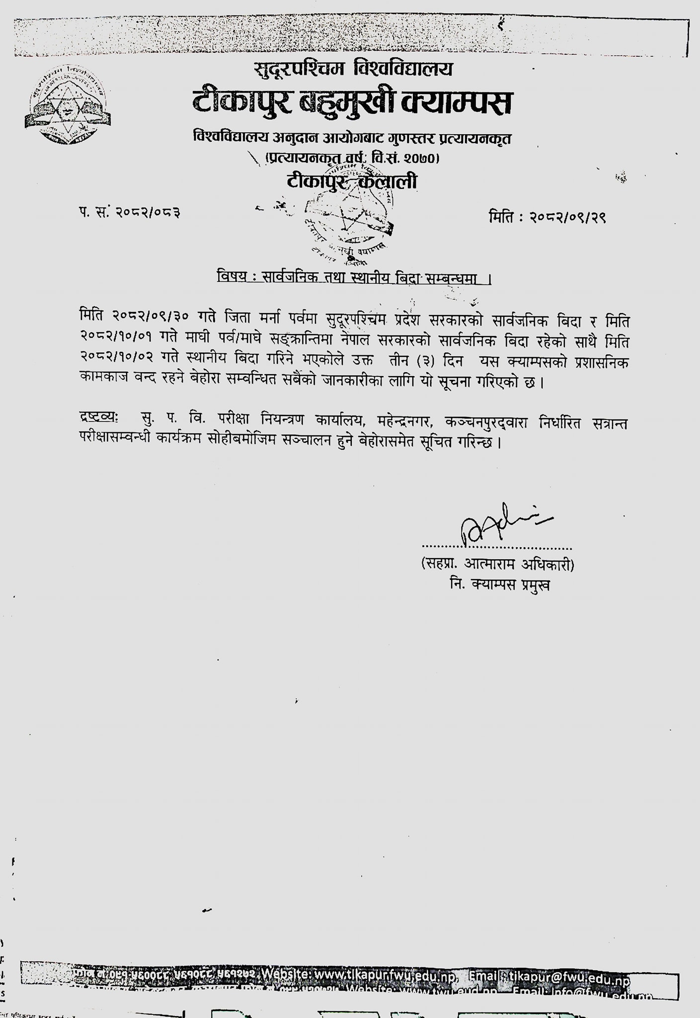 स्नातकोत्तर तहको प्रवेश परिक्षाको नतिजा प्रकाशन तथा भर्ना सम्बन्धी अत्यन्त जरुरी सूचना ।