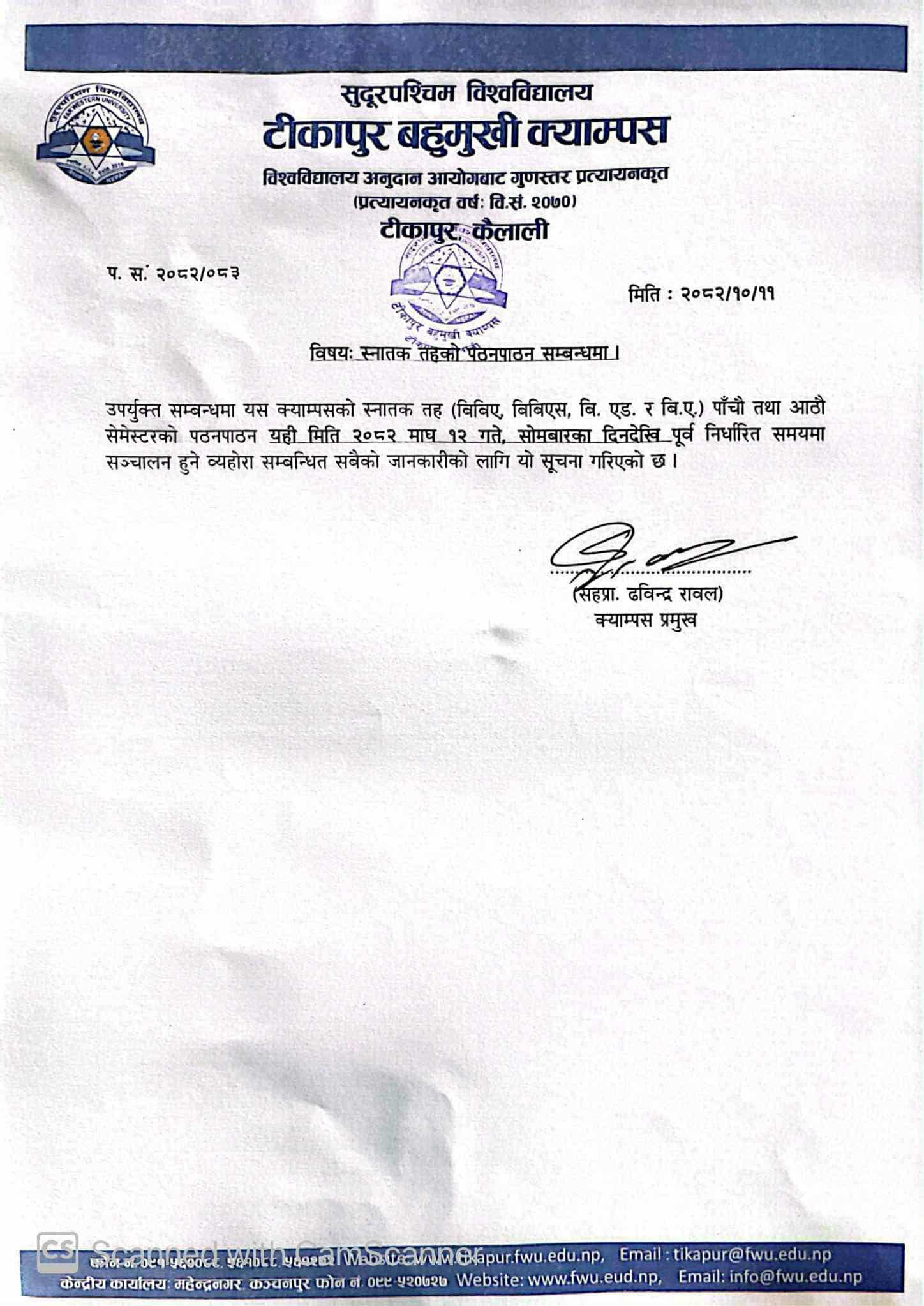 स्नातक तहको पठनपाठन सम्बन्धमा।