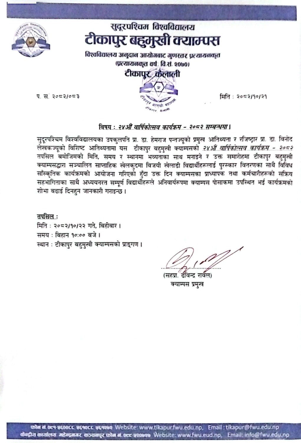 २४ औं वार्षिकोत्सव कार्यक्रम- २०८२ सम्बन्धमा |