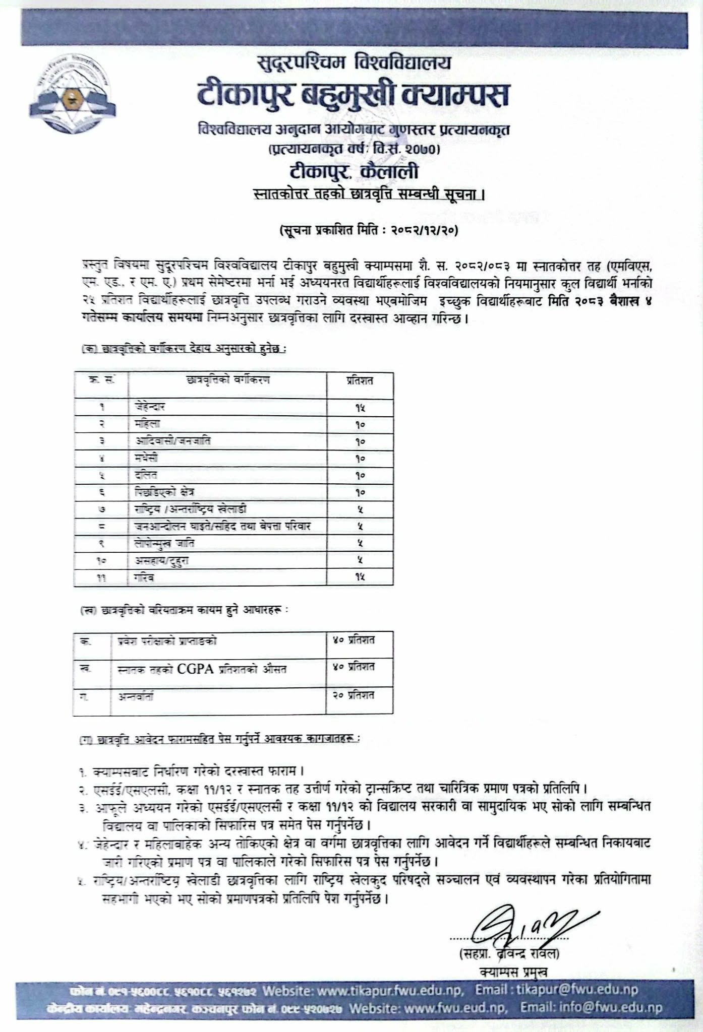 स्नातकोत्तर तहक छात्रवृत्ति सम्बन्धी सूचना ।
